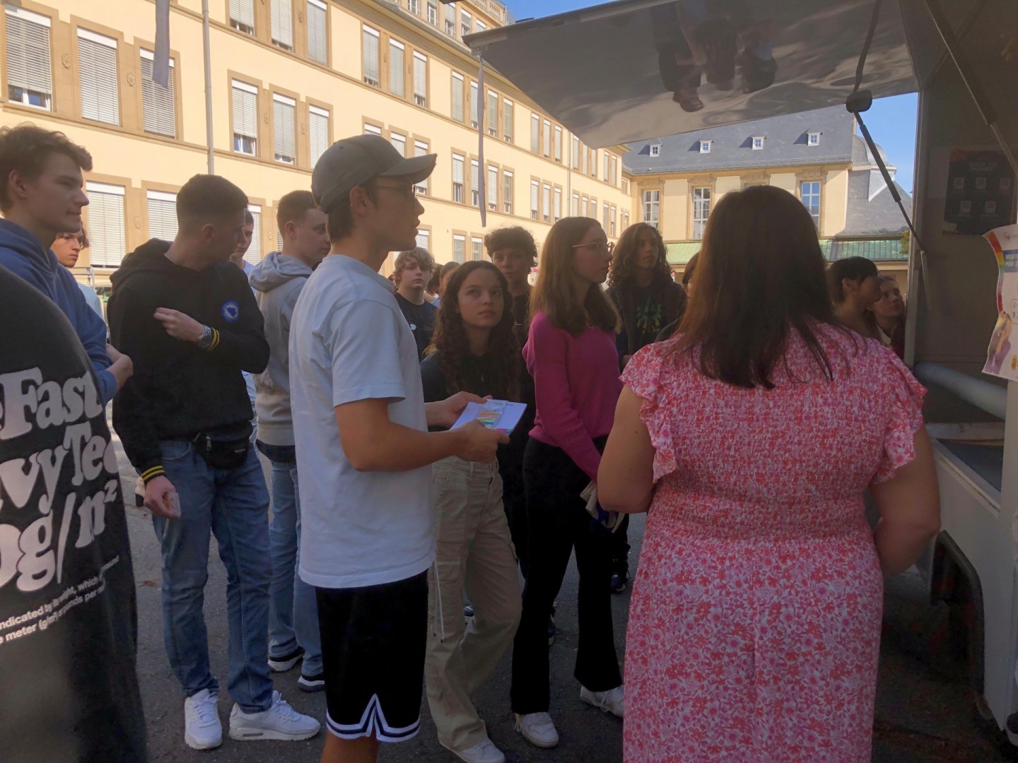 Am Kader vum “Infomobil on Tour” vum Jugendinfopunkt (JIP) war dësen, den 28 September bei eis am Schoulhaff. Eis Schüler kruten nëtzlech Informatiounen iwwer Aarbecht vum JIP.