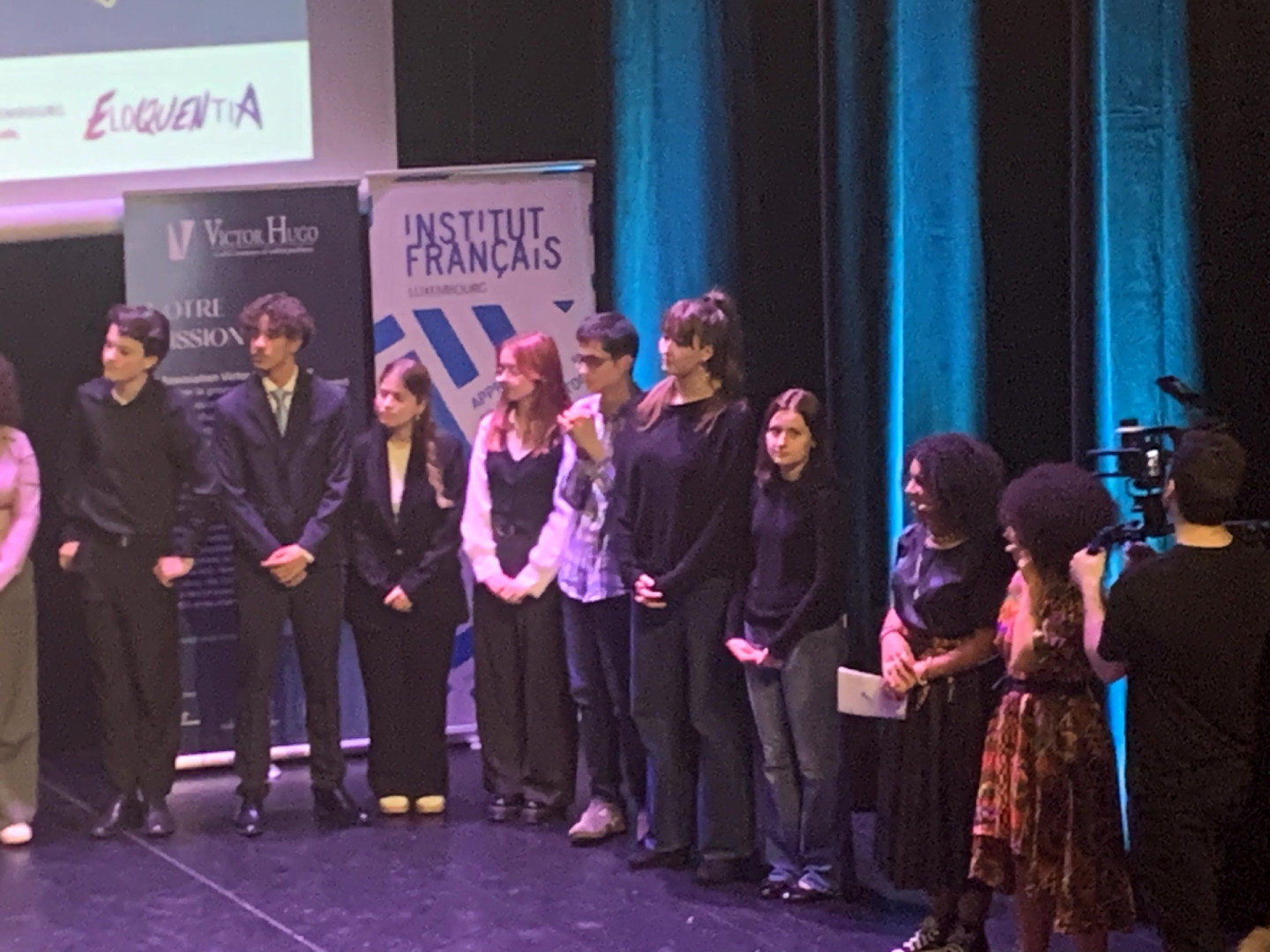An zwou Gruppen, geleet vun zwee Animateuren déi extra vu Paräis ugereest waren, hunn 21 SchülerInnen sech op den 'art de la parole' konzentréiert. Wärend dräi Stonnen, all Dag, hunn si op franséisch geléiert, sech iwwerzeegend auszedrécken. Wéi präsentéiert een seng Iddien am beschte fir Leit ze iwwerzeegen? Wéi iwwerwënnt een seng Angscht, seng Meenung virun engem Grupp auszedrécken? Et waren intensiv Exercicer – oft en Challenge – mee no dësem Coaching war d'Satisfaktioun grouss a véier SchülerInnen ware bereet un dem Concours d'éloquence deel ze huelen: d'Hannah Eser, d'Jil Seiwert, d'Héloïse Nesser an de Luca Carosone.