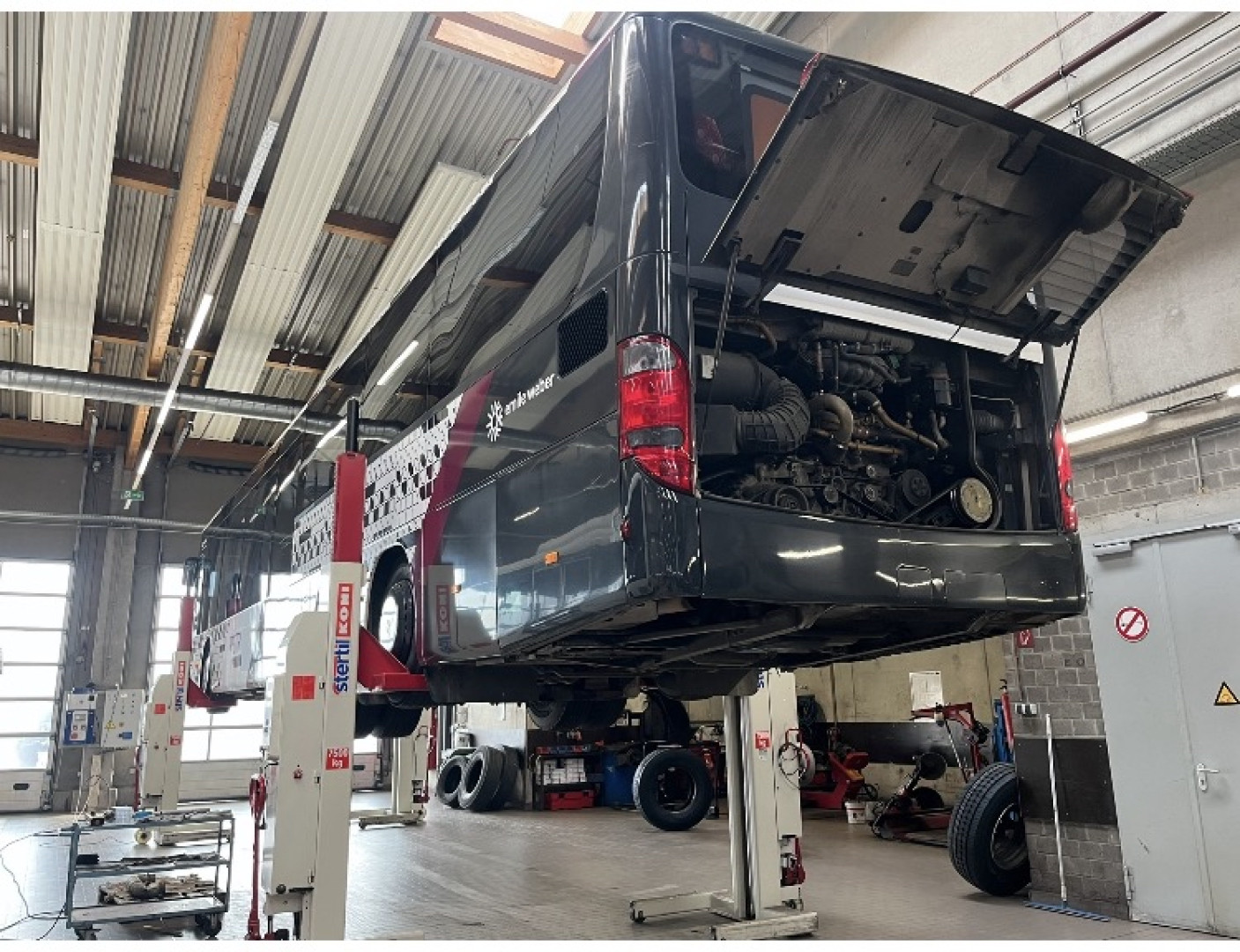 Um zweeten Dag huet de Wee d'Grupp bei d‘Busentreprise Emile Weber gefouert. Vun der éischter Minutt u war d'Empfang häerzlech a waarm – d'Ekipp vun Emile Weber huet d'Schülerinnen a Schüler mat vill Freed a Begeeschterung begréisst a sech Zäit geholl, fir all Froen ausféierlech ze beäntweren. D'Schülerinnen a Schüler mat eegenen Aen gesinn, wéi modern Bussen ugedriwwe ginn – vum klasseschen Dieselmotor iwwer Hybrid bis hin zu vollelektresche Busser. Fachleit vum Betrib hunn erkläert, wéi eng Erausfuerderungen den Ëmstig op méi nohalteg Undriffer mat sech bréngt a wéi d'Transportbranche sech op d'Ufuerderunge vun der Zukunft virbereet. E beandrockende Abléck hannert d'Kulisse vum ëffentleche Verkéier.